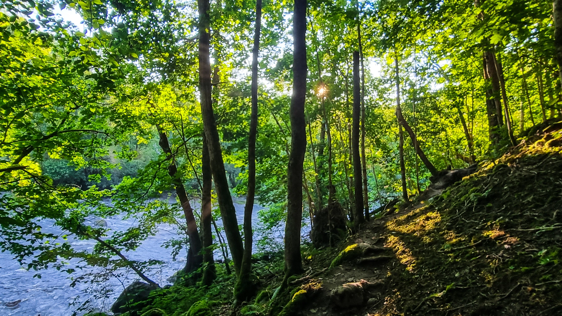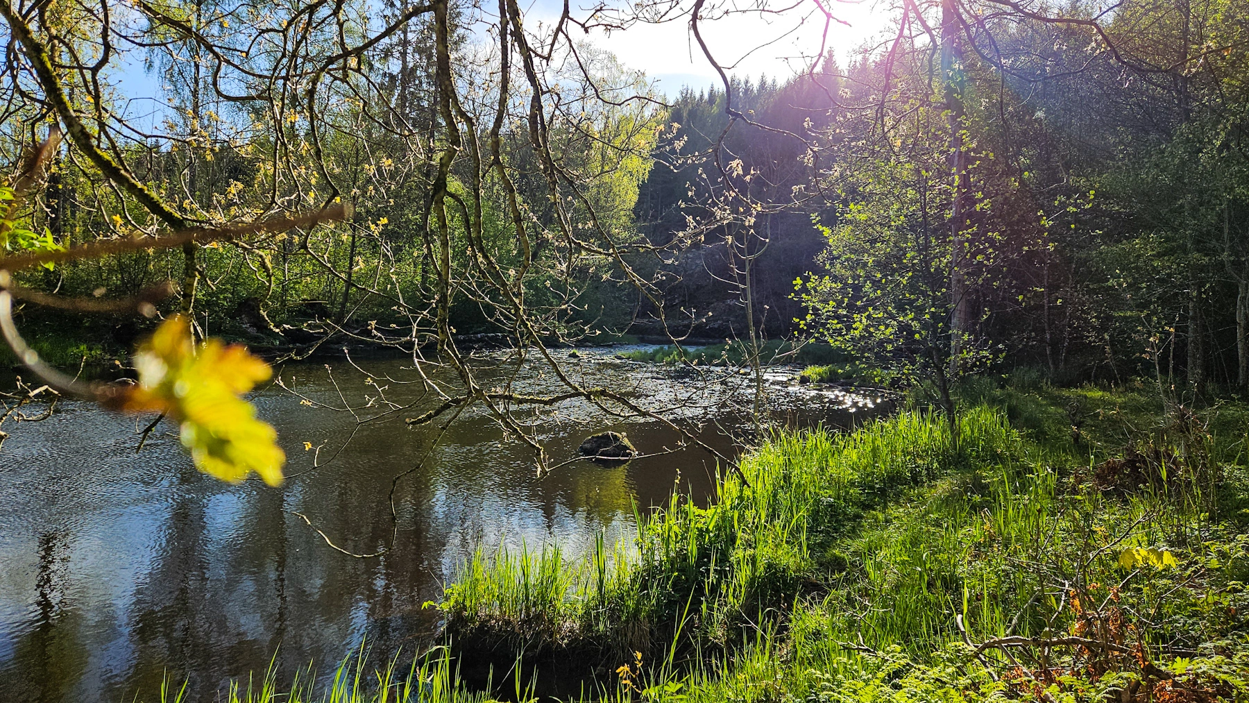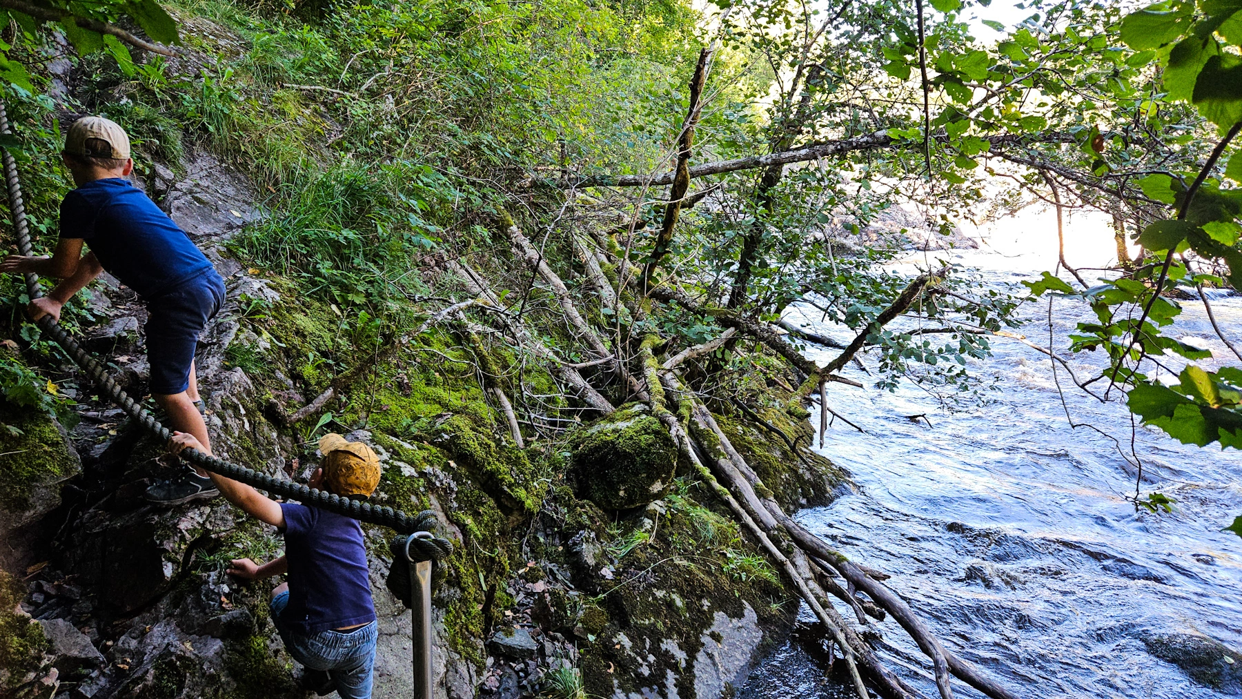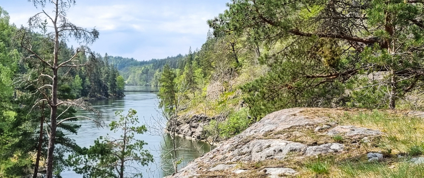 Das Flusstal ist aber nicht bloß für Angler ein tolles Ausflugsziel: Entlang des Flusses führt ein kleiner, spannender Pfad, der einen direkt entlang des Wasser führt und tolle Einblicke in die Flora und Fauna dieses tief eingeschnittenen Tals bietet. Mittlerweile ein Naturreservat, ist dies eine ganz besonderer Fleckchen Bohuslän. Entlang des Flusses gibt es Bänke und kleine Unterstände, aber der Pfad ist teilweise nicht ganz einfach zu gehen und einigermaßen trittsicher sollte man sein. Parken kann man unter anderem direkt an der Lachstreppe (insbesondere hier im Sommer mit Chancen auf springende Lachse!) und auf dem Campingplatz Brålands Gard. Ganz losgelöst von der Wanderung entlang des Tals ist die Lachstreppe übrigens für sich genommen schon einen Besuch wert. Eine kleine Hängebrücke führt über die Lachstreppe und man kann in die verschiedenen Becken hineingucken – dazu ein toller Blick ins Tal.