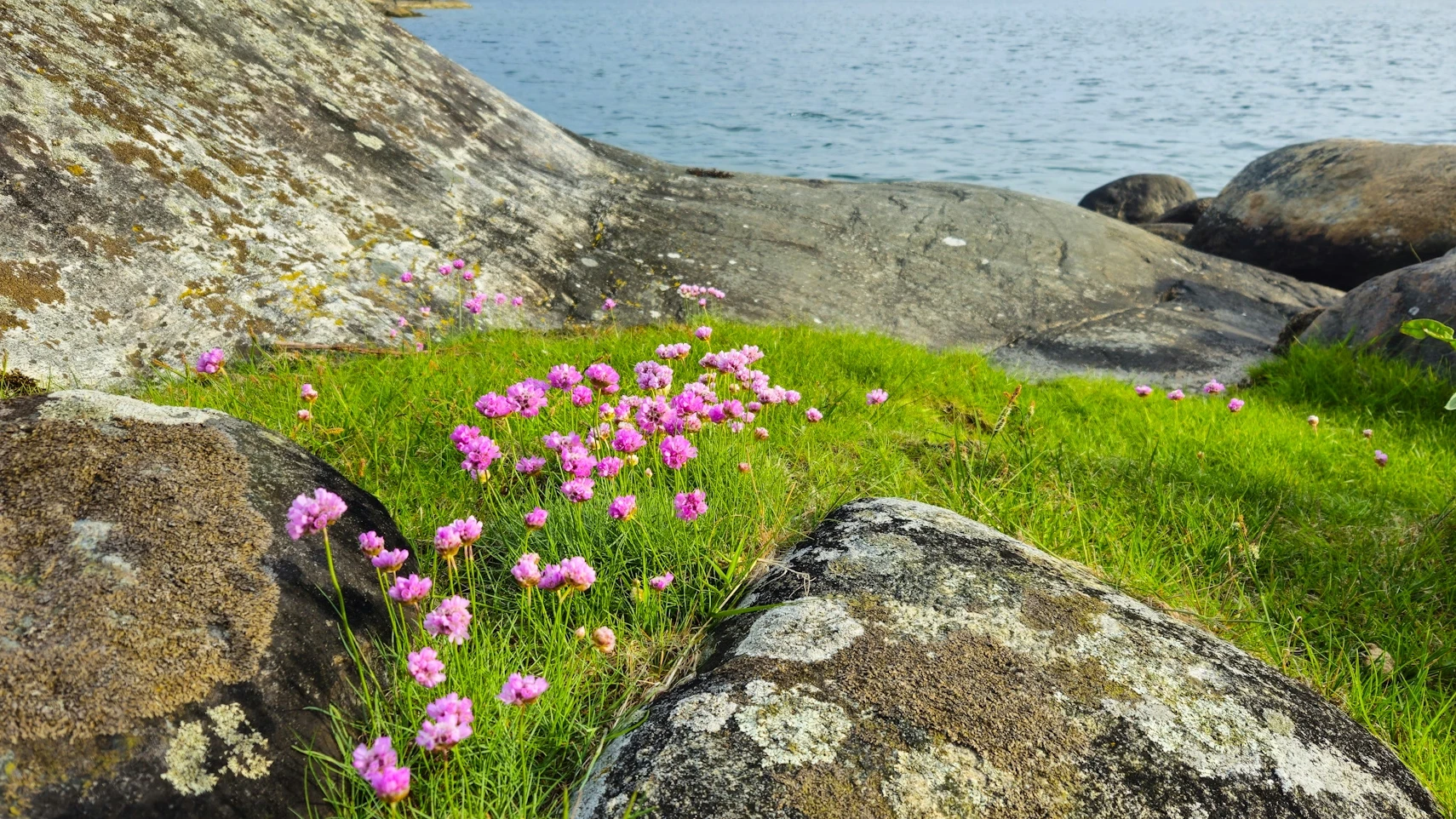 Etwas weiter draußen wird die Flora etwas spärlicher, und irgendwann hat man nur noch Felsen und Gräser unter sich.