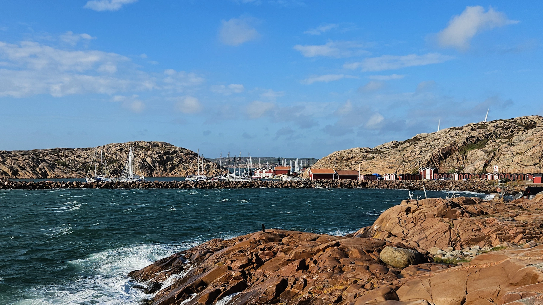 Direkt an der kleinen Landstraße über die man in den Ort kommt, gibt es einen kleinen Parkplatz auf einer Wiese. Von hier aus geht man über eine kleine Straße hinunter Richtung Wasser. Man geht entlang einer kleinen Bucht und kommt dann zu einem Minihafen. Eigentlich sind es nur ein paar Stege mit so genannten Sjöbuds, kleine rote alte Häusschen – erbaut auf gestapelten Steine als Fundamente – die als Verwahrschuppen fürs Boots- und Fischerleben genutzt werden. Nachdem man über diese kleine Steganlage spaziert ist, beginnt der Küstenweg, der direkt am Wasser entlang führt und tolle Aussichten bietet.