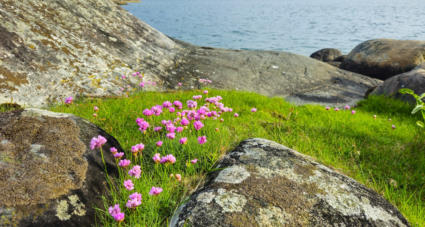 Etwas weiter draußen wird die Flora etwas spärlicher, und irgendwann hat man nur noch Felsen und Gräser unter sich.