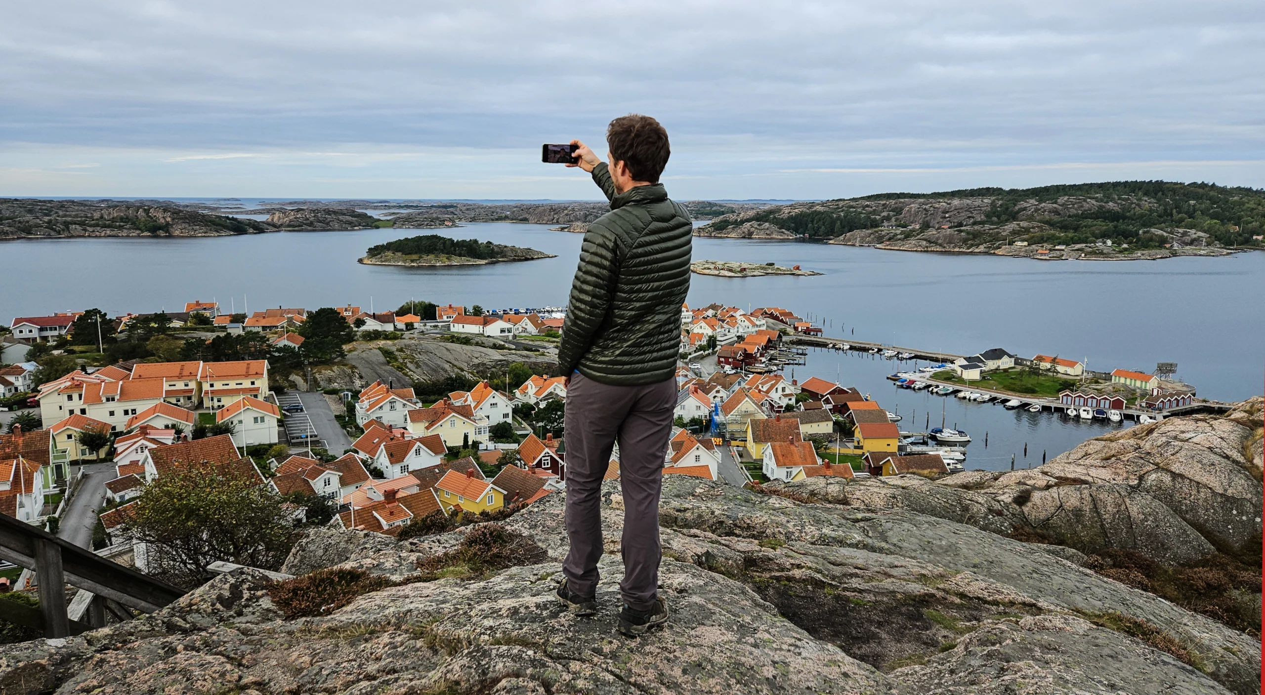 Einer der populärsten Küstenorte, obwohl relativ klein. Fast schon kuschelig schmiegt sich die Hafengegend an eine im Hintergrund stehende steile Felswand. Wenn man hier ist, sollte man auf jeden Fall den Kungsstigen gehen: Ein kleiner Pfad (beginnend direkt an dem kleinen Spielplatz am Hafen), der äußerst spektakulär erst durch eine schmale Schlucht (in der mehrere dicke Felsen eingeklemmt über dem Pfad drohen), und dann über eine Treppenanlage hinauf auf ein Aussichtsplateau oberhalb des Ortes führt. Man sollte etwas trittsicher sein, aber der Aufwand lohnt sich! - Hunnebostrand 43min